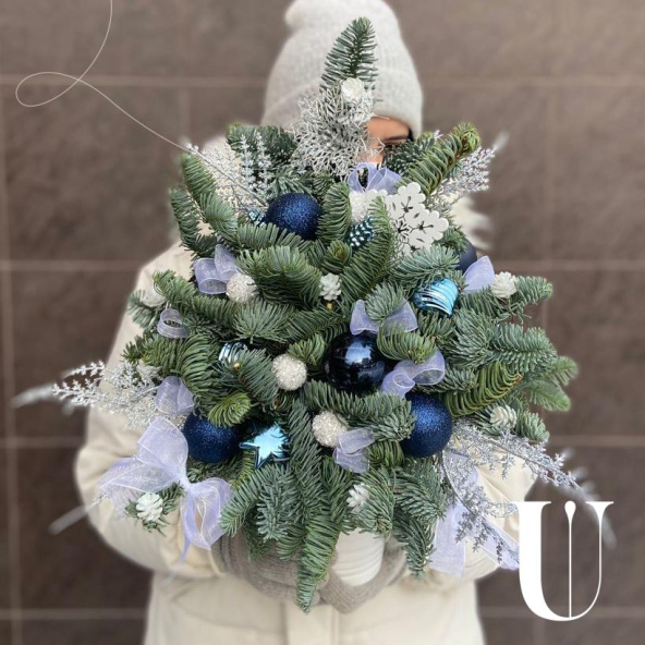 Композиция из роскошного нобилиса будет радовать получателя очень долгое время и дарить новогоднее настроение