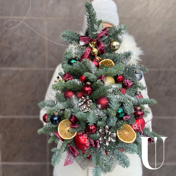 Композиция из роскошного нобилиса будет радовать получателя очень долгое время и дарить новогоднее настроение