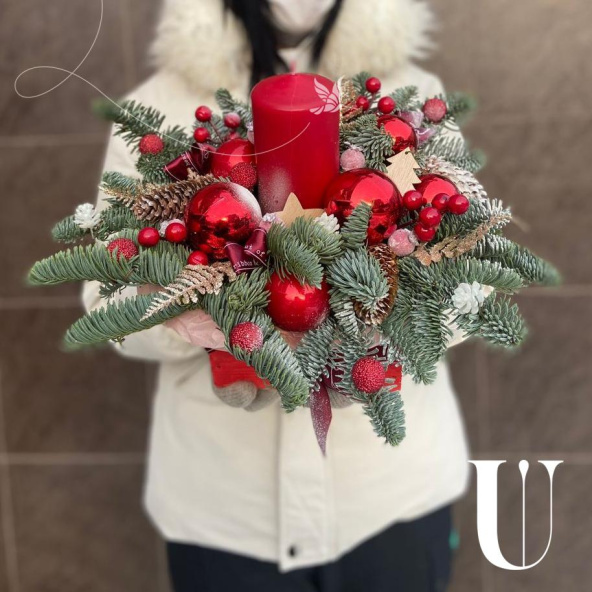 Композиция из роскошного нобилиса будет радовать получателя очень долгое время и дарить новогоднее настроение